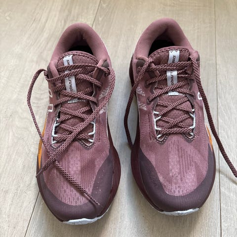 Skoene er ca 2 størrelser for stor for meg, så jeg burde ikke ha kjøpt dem i utgangspunktet. Har vært ute med dem på asfalt/grus et par ganger.
