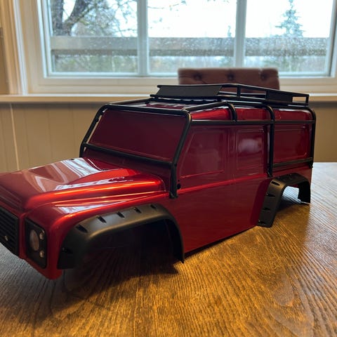 Full body protection for your Traxxas TRX-4 D110 Land Rover Defender Body with this metal roll cage with an inbuilt luggage tray and bright LED Bar for the ultimate scale build.