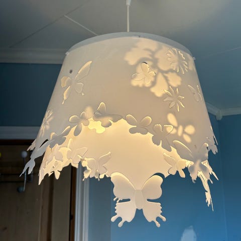 Blå sommerfugllampe fra IKEA til salgs. Lite brukt.