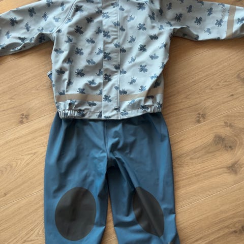 Mørkeblå regndress m/fleecefòr inni. Str 104