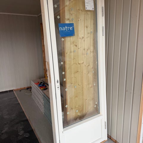 Natre terrassedøren med glassfelt og hvit ramme