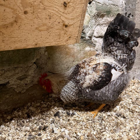 Hanar som er knapt eit år gamle. Fargerike og kjekke. Dverg kochin iblanda fønix.