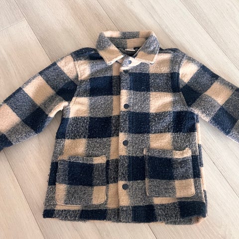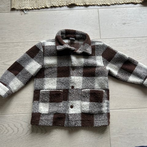 Lindex jakke for barn i størrelse 92. Jakken er unisex og laget i polyester. Den har flerfarget rutemønster med store ruter, krage og lange ermer. Foran er det knapper og lommer. Passer til hverdagsbruk for barn rundt 1,5–2 år.