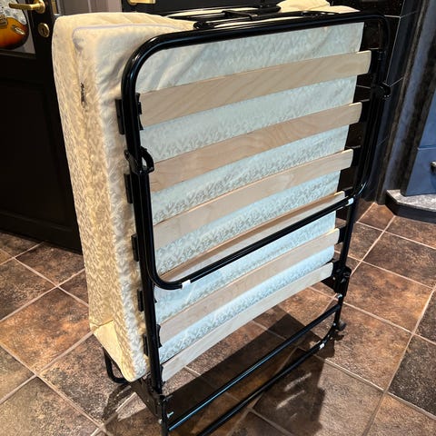 Bunnen/rammen kan brettes sammen slik at den tar ganske liten plass når sengen ikke er i bruk