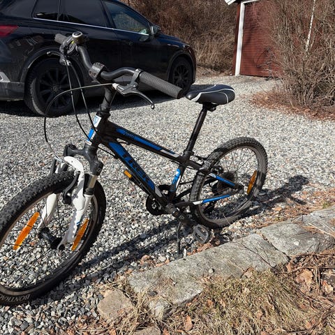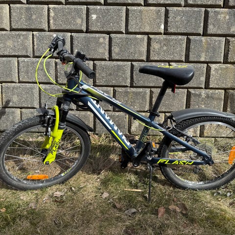 Selger en brukt sykkel. Merket er White MTB Lite og er 20''. Passer for barn mellom 6 -8 år. Sykkel med gir og bremser på styret.