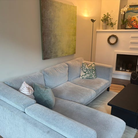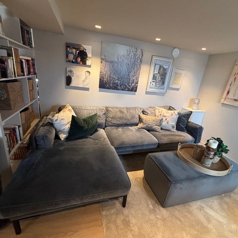 Pent brukt sofa fra home factory. Grå velur. Kjøpt for 7 år siden.