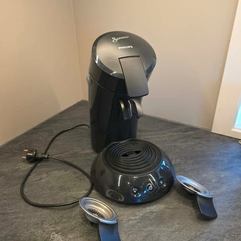 Philips Senseo kaffemaskin i svart utførelse. Maskinen er beregnet for bruk med kaffeposer/pods. Den har avtagbart dryppbrett og avtakbar vannbeholder på baksiden. Strømkabel med jordet støpsel følger med. Egnet til tilberedning av kaffe i kopper eller krus på kjøkkenbenk eller lignende bruksområder i hjemmet.