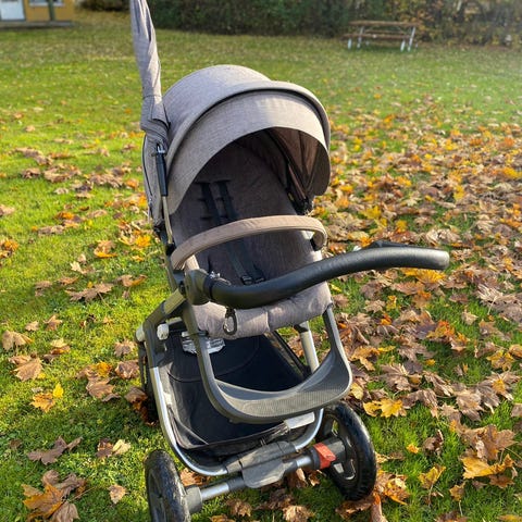 Det er en solid vogn. Den er høy og det er lett å ha oversikt. Den er fantastisk å trille med, kommer til i alle slags terreng. God skjerming når kalesjen er nede, har aldr trengt å bruke uv-skjerming. Masse plass i understellet!