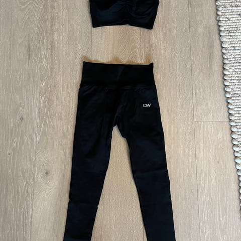 Calvin Klein undertøysett for dame i størrelse M. Sett med svart bralette og matchende underdel/tights i elastisk materiale. Begge deler har karakteristisk Calvin Klein-logo på linningen. Egnet som hverdagsundertøy eller lett lounge-/hjemmebruk.