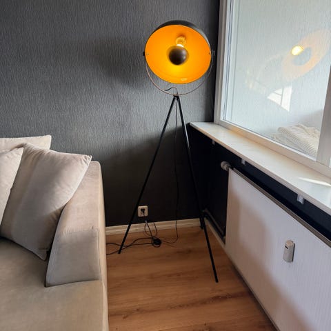 Kan dimmes. Høyde på lampe kan justeres 118-187 cm. Må hentes