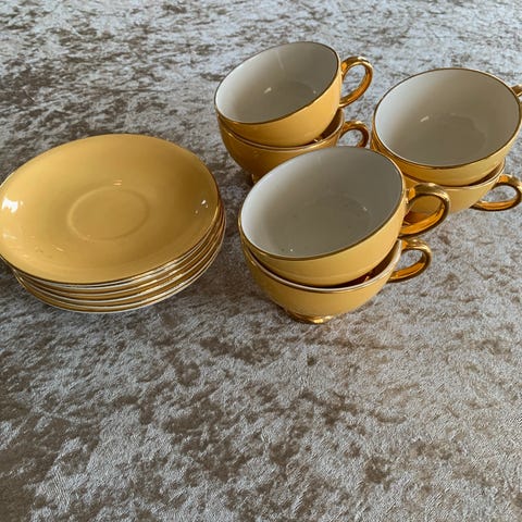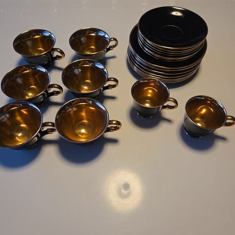 Stavangerflint kaffekopper med skål svart dekor
