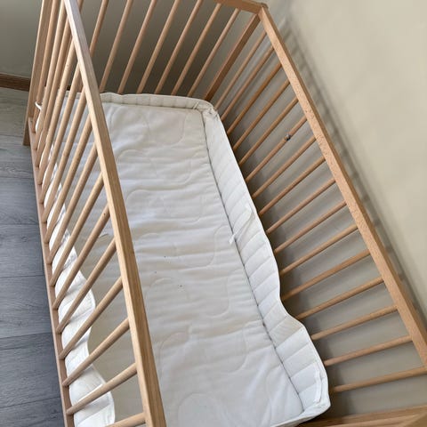 Godt brukt barneseng med nyere pent brukt aerosleep madrass. Er en knekk i bunnen. Men kan fikses. 120Lx61bx82h