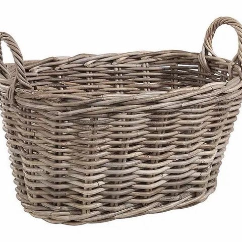 Home & Cottage kurv med lokk i flettet rotting i brun naturfarge. Kurven har rundt lokk med håndtak i midten og åpen flettestruktur i sidene. Egner seg til oppbevaring av for eksempel tekstiler, leker eller skittentøy. Står stødig på gulv og passer inn i ulike rom som stue, gang, soverom eller bad, avhengig av behov og plassering.