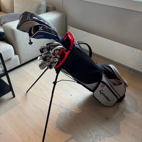 Taylormade sandwedgen har blitt lagt til som ekstra kølle og grepet er litt slitt, Sandwedgen er en Taylormade M2