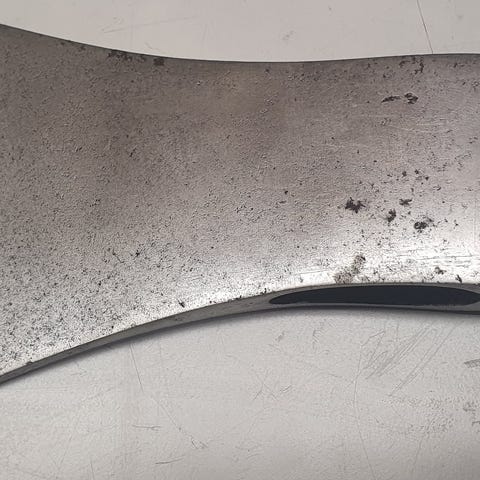 Gammel arbeidshjelm i aluminium, merke McDonald T. Størrelse 6,5 til 7,75. (Aner ikke noe om amerikanske hjelmstørrelser, men den ser ut til å være vanlig voksenstørrelse) Klistremerkene inni antyder at hjelmen ble produsert i 1986, så den er helt sikkert ikke brukbar/godkjent i yrkessammenheng lenger.