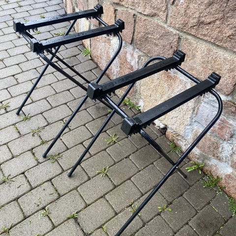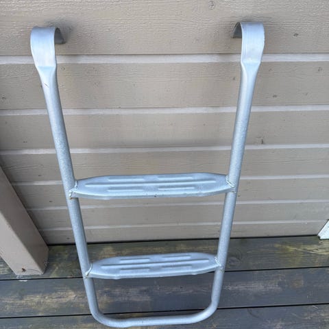 Universal trampoline stige i metall med plasttrinn selges. Beregnet for store hagetrampoliner for utebruk.