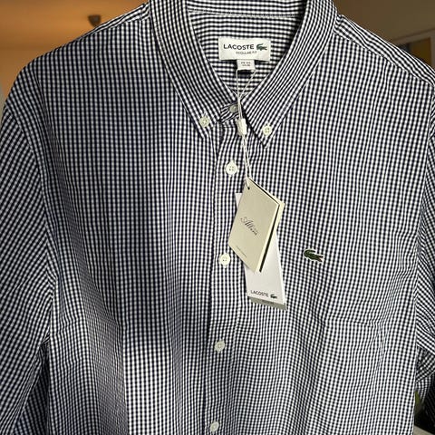 Selger en helt ny og ubrukt Lacoste skjorte da den ikke blir brukt. Fått i gave for lenge siden og hengt i skapet siden