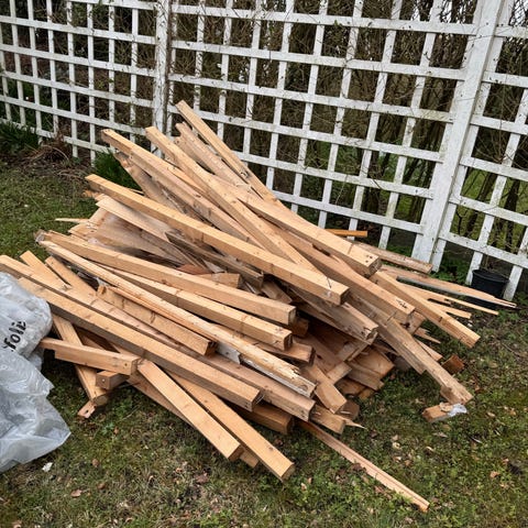 Restparti trevirke og bygningsmaterialer i ulike lengder og dimensjoner. Består hovedsakelig av planker, bord og avkapp i tre. Egnet som materiale til enkle byggeprosjekter, reparasjoner, hobbyprosjekter eller som ved/brensel der det er hensiktsmessig. Leveres samlet slik det fremkommer på bildet.