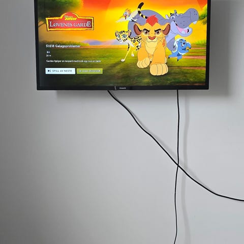 Ca 8 år gammel velfungerende 32 tommer med bevegelig veggfeste. Kan ligge inntil veggen og tas ut i ulike vinkler (til høre og venstre).
