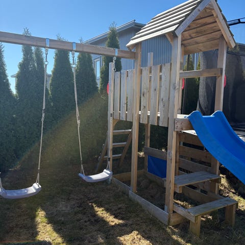 Selger en stor og solid lekeplass til hagen — et ekte paradis for barn hvor de ikke vil kjede seg! Perfekt for aktiv utelek og mange timer med moro hver dag.
