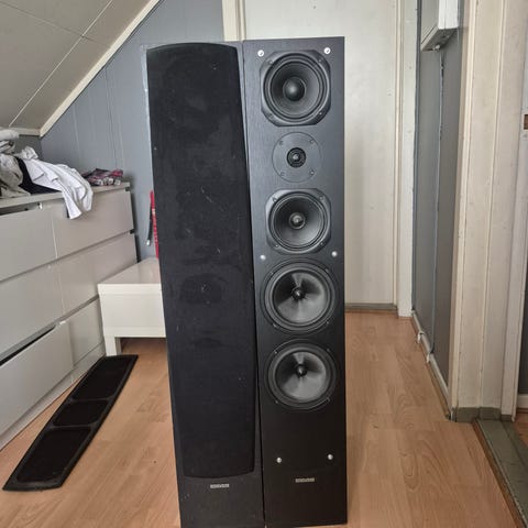 Svært pent brukt og ivaretatt PSB stereo/surroundanlegg med 5 høytalere, 1 basskasse og forsterker, alt av kabler følger med og alt funker som det skal