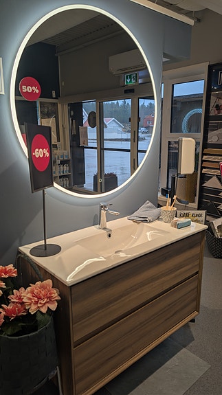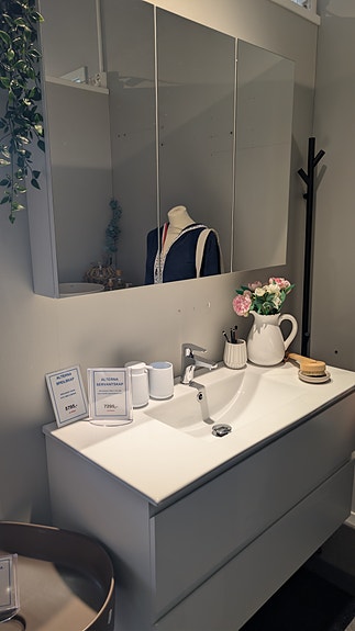 Det er ikke tatt hull i benkeplaten til servantarmatur eller til avløp for vasken. Kran følger ikke med, men vi har et stort utvalg av armatur som passer.