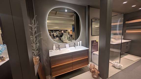 Benkeplate, med servant fra Roca Ø37 cm Beige, som på bildet.