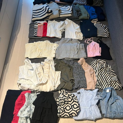 Selger masse klær, da jeg skal flytte og ikke har plass til alt. Send melding for nærmere bilder. Alt er i str fra xs-s-m. Selger alt for 100-200per, bortsett fra noen ting men da kan vi bli enig om pris. Kan hentes/ses på i Sandefjord eller så kan jeg sende. Masse hesteklær/utstyr også hvis det er interesse. Masse forskjellige merker som Zara, ganni, Lois, hm, Gina, veja, jott. Kan også bli enig om en pakkepris om du vil ha flere ting