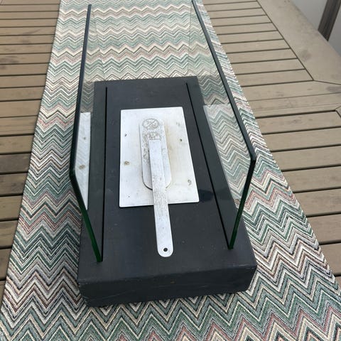 bordpeis med glass og metall