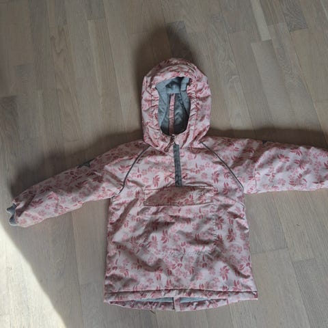 Reflex jakke for barn i størrelse 104. Jakken er rosa med hette og glidelås i front. Den har refleksdetaljer på ermet og glidelåslommer foran. Innsiden har mørkt fôr som gir ekstra komfort. Passer til hverdagsbruk og utelek for barn rundt størrelse 104.