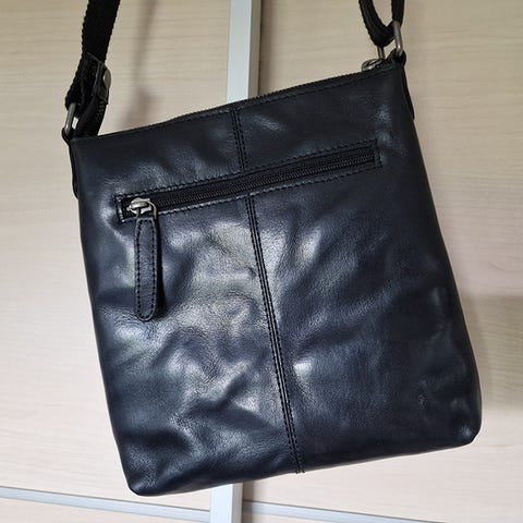 På baksiden av vesken finner du en romslig glidelåslomme.