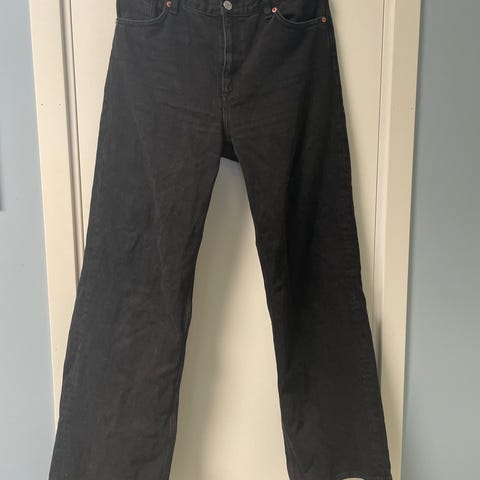 Weekday jeans i svart denim for dame. Buksen har livvidde W32 og er merket størrelse M. Klassisk femlommers modell med glidelås og knapp i front. Fremstilt i denimstoff som gir et robust uttrykk. Passer til hverdagsbruk og kan kombineres med ulike topper og gensere.
