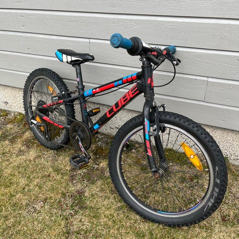 Barnesykkel 20" . Sykkelen har dempet gaffel foran, gir bak og felgbremser. Passer til barn som har vokst ut av mindre barnesykler og trenger en sykkel med større hjul og flere gir til bruk på vei og lett grus. Sete og styre kan justeres noe i høyden for tilpasning til barnet.