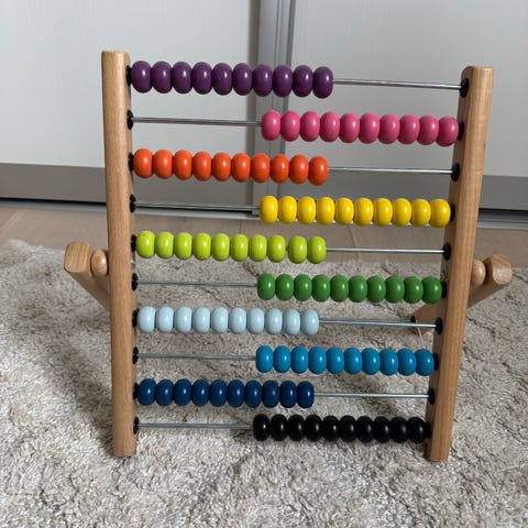Egnet som telle- og regneleke for barn, samt til enkel øving på farger og finmotorikk.