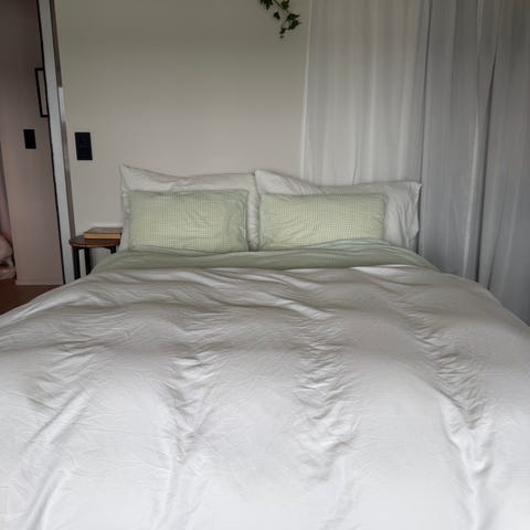 2 år gammel seng fra Beliani selges fordi den er for stor for meg. Jeg har satt på litt lengre ben enn orginalen for å få litt høyere seng. Den kan tas fra hverandre. Selger også madrassen og overmadrassen om ønskelig. Helst det. Bare sengen uten madrass kostet over 6000. Jeg er villig til å bytte i en mindre seng også. Målene er madrassen. Prisen er for sengen. Kom med bud.