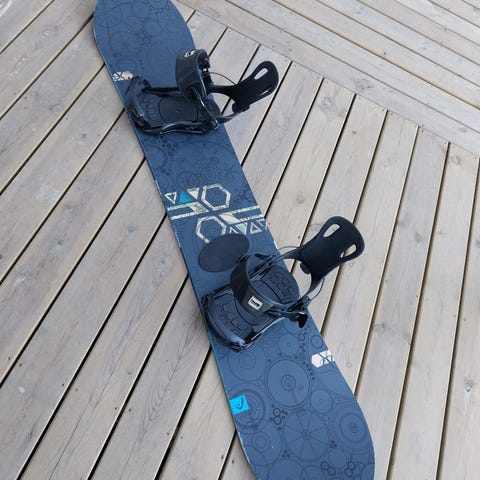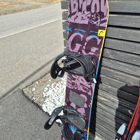 Head snowboard med bindinger i lengde 128 cm. Brettet har blått mønster på oversiden og rød/blå underside. Inkluderer Head-bindinger i svart med justerbare stropper. Egnet for yngre kjørere.