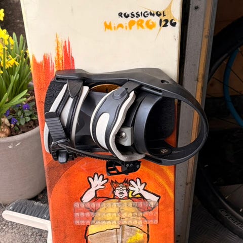Den ene stroppen på tåbindingen er røket. Fås enkelt tak i på skiverksted.