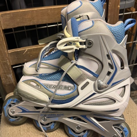 Rollerblade rulleskøyter i størrelse 41. De er ikke brukt manfe turene men er noen bruksmerker. Pris kan diskuteres.