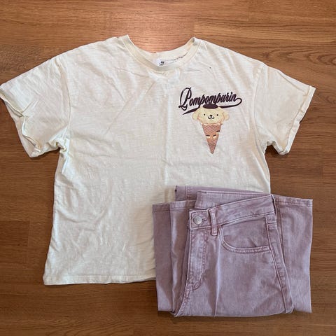 H&M 4 t-skjorter og 1 genser for jente i størrelse 170. (Oversize)T-skjorten er flerfarget med trykkmotiv på forsiden.