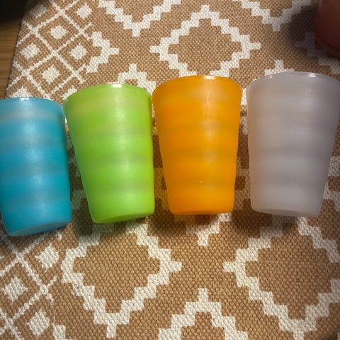 Tupperware plastkopper flerfarget 3 stk selges samlet for 100 kr