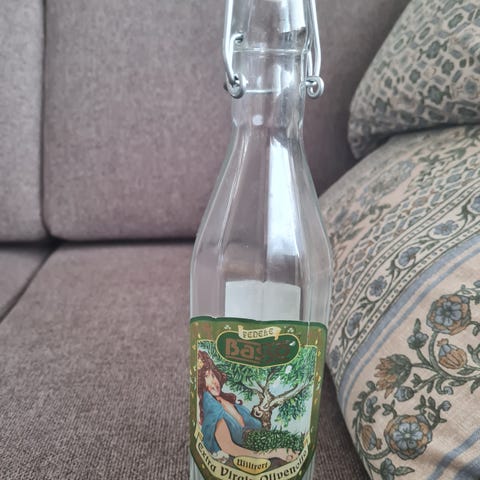 Liten drikkeflaske i gullfarge. Kun brukt én gang. Må hentes.
