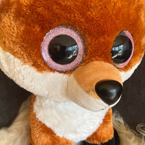 Ty kosedyr kenguru i brun farge. Mykt plysjdyr med store øyne og liten kenguru i lommen foran. Egnet som lekekamerat eller kosebamse for barn.