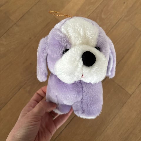 Plysjhund leke brun og hvit