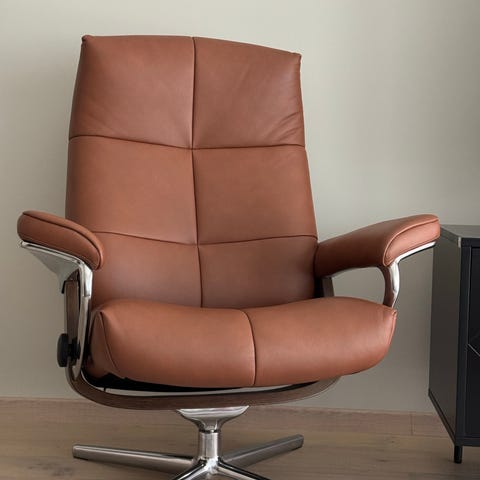 2 Ekornes Stressless med høy rygg i brunst skinn 1,5 år gamle. Pent brukt. 14000;;pr. stol. Kjøper du begge stolene? Selger vi de for 27000;Her kan du gjøre et kupp, på stoler som varer evig😉Paris Cross hvilestol, regulerbar rygg og nakkestøtte. Skinnet er i fargen; Taupe, understell sort. Bare spør om du trenger mer informasjon om stolene👍🏻 https://www.bohus.no/stoler/lenestol/hvilestol/paris-hvilestol