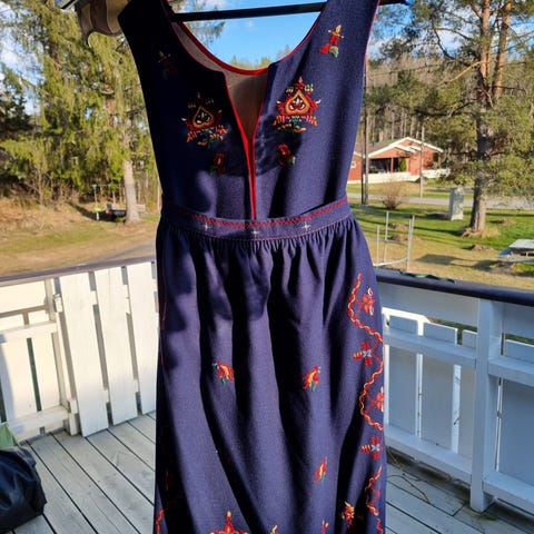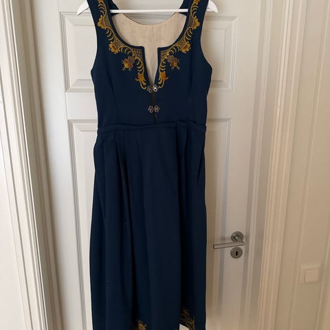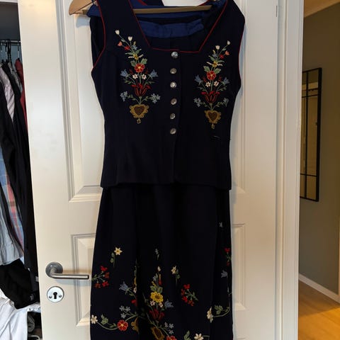 Selger en blå sunnmørsbunad til jente.
