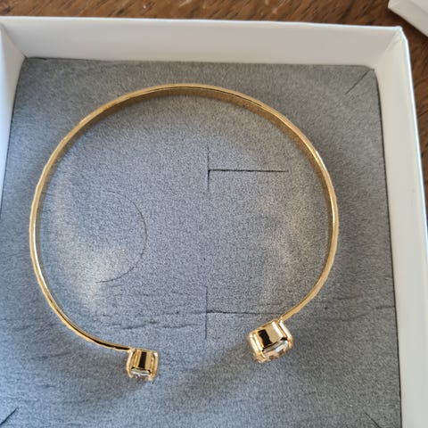 Enkelt armbånd fra Caroline Svedbom med to stener. Gullbelagt. Brukt 2 ganger, ingen synlige bruksmerker. Passer til XS/S hånd.