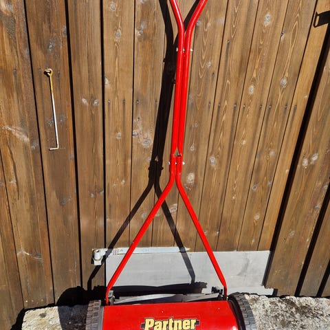 Manuell sylinderklipper med to hjul og sylinderkniver som klipper gresset ved skyving. Håndtak i metall med grep øverst for enkel manøvrering. Egnet for klipping av plen der man ønsker en enkel, bensin- og strømfri løsning.