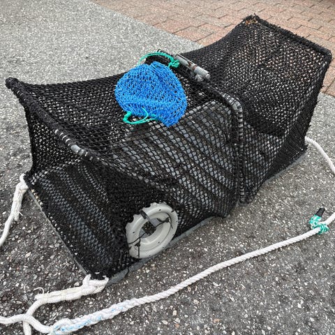 Teiner for fangst av krabbe og hummer. Teinene er laget i nett med metallbøyler. De kan foldes flate for enkel transport og lagring, og slås opp til full størrelse ved bruk. Passer til bruk fra båt eller fra land der dette er tillatt, og kan rigges med tau, blåser og agn etter behov.