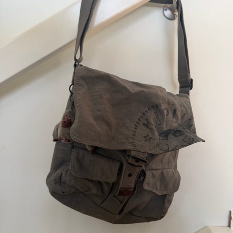 Kipling skulderveske i stoff blå