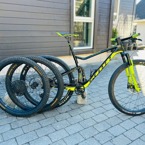 Sykkelen har blitt godt vedlikeholdt underveis og det ble i fjor sommer byttet alt av demperlager og hjullager, nytt kjede. Karbon flaskeholder følger med.